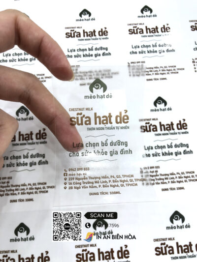 Decal trong suốt là loại tem nhãn cao cấp với thiết kế nền trong, giúp sản phẩm có cảm giác như được in trực tiếp lên bao bì. Đây là lựa chọn hàng đầu cho các thương hiệu muốn nâng cao hình ảnh và tạo sự khác biệt. Nếu bạn đang tìm dịch vụ in decal trong suốt tại Biên Hòa, đây là giải pháp giúp sản phẩm trở nên tinh tế và chuyên nghiệp hơn.